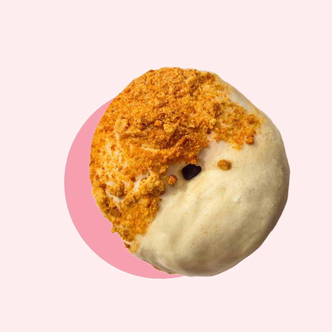 A ring donut rolled in a classic cinnamon & sugar coating.